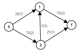 간선에 1의 용량을 흘릴 때마다 그 간선에 주어진 비용이 드는 그래프를 생각할 수 있습니다.